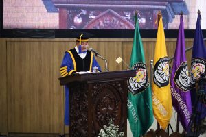 Rektor Universitas Diponegoro dalam sambutannya menyampaikan apresiasi dan kebanggaan atas capaian Prof. Dr. Darsono. Pengukuhan ini diharapkan dapat semakin memperkuat peran Undip sebagai perguruan tinggi riset serta mendorong lahirnya inovasi dan pemikiran strategis yang bermanfaat bagi pembangunan nasional.